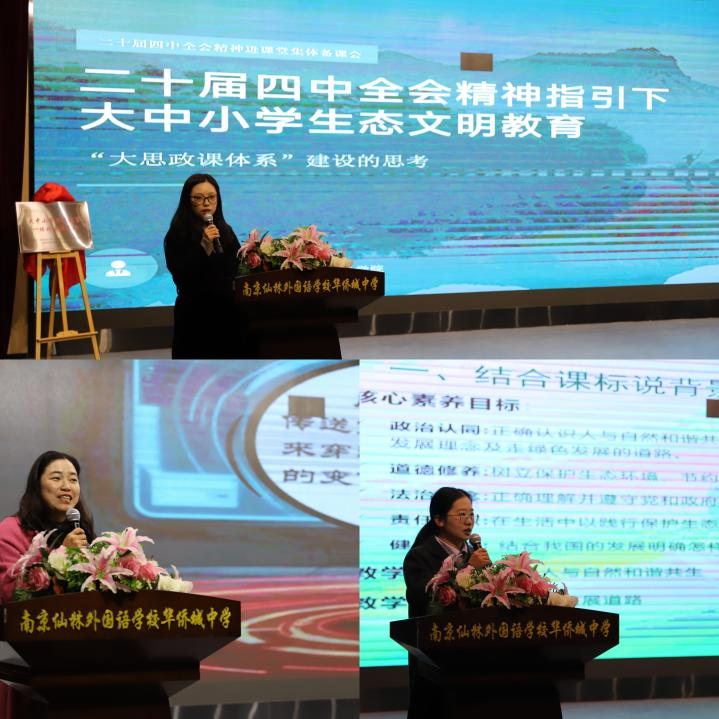 为将党的二十届四中全会精神融入思政课教学,深入推动党的创新理论进教材、进课堂、进头脑,1月9日,党的二十届四中全会精神进课堂集体备课会暨大中小学思政教育一体化建设基地成立仪式在南京仙林外国语学校华侨城中学举办。活动由党委宣传部与马克思主义学院,联合中共南京市栖霞区委宣传部、仙外华侨城中学、仙外华侨城小学共同举办。主承办单位相关领导、师生代表参加活动。
