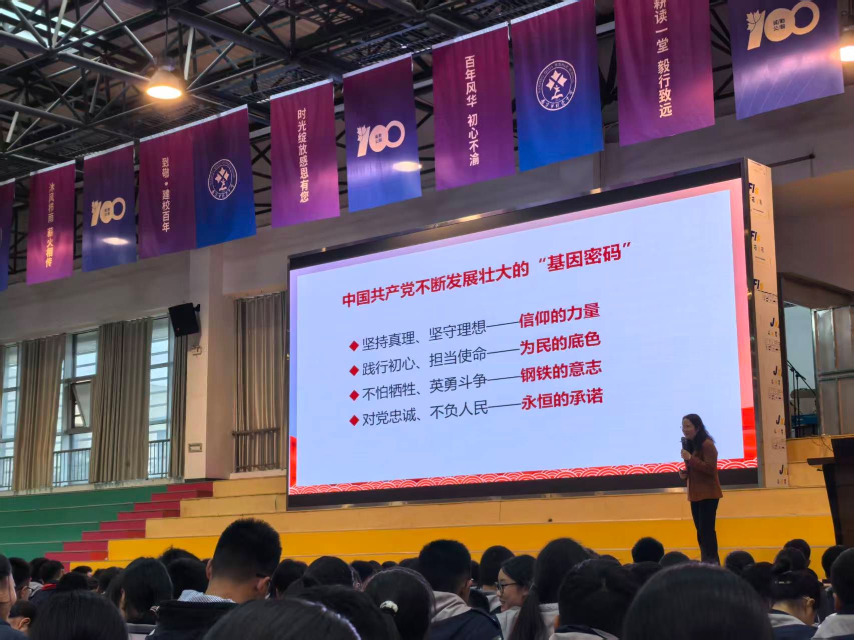 活动中,马克思主义学院李卉博士为该校近800名师生带来题为“探秘中国共产党不断发展壮大的“基因密码”——带你读懂伟大建党精神”的讲座。讲座从坚持真理坚守理想、践行初心担当使命、不怕牺牲英勇斗争、对党忠诚不负人民四个层面系统阐释伟大建党精神的内涵。李卉博士运用丰富的图片、视频、数据和典型案例,生动展现了中国共产党人在不同历史时期的精神风貌与不朽功勋。讲座紧密联系中学生实际,勉励同学们树立远大理想做有方向的人,恪守诚信涵养品德做有温度的人,勤学苦练增长才干做有韧性的人,融入时代勇担责任做有担当的人,并倡议大家在清明假期寻访红色足迹。整场讲座深入浅出、情理交融,引发了师生的强烈共鸣与深入思考,现场气氛热烈。