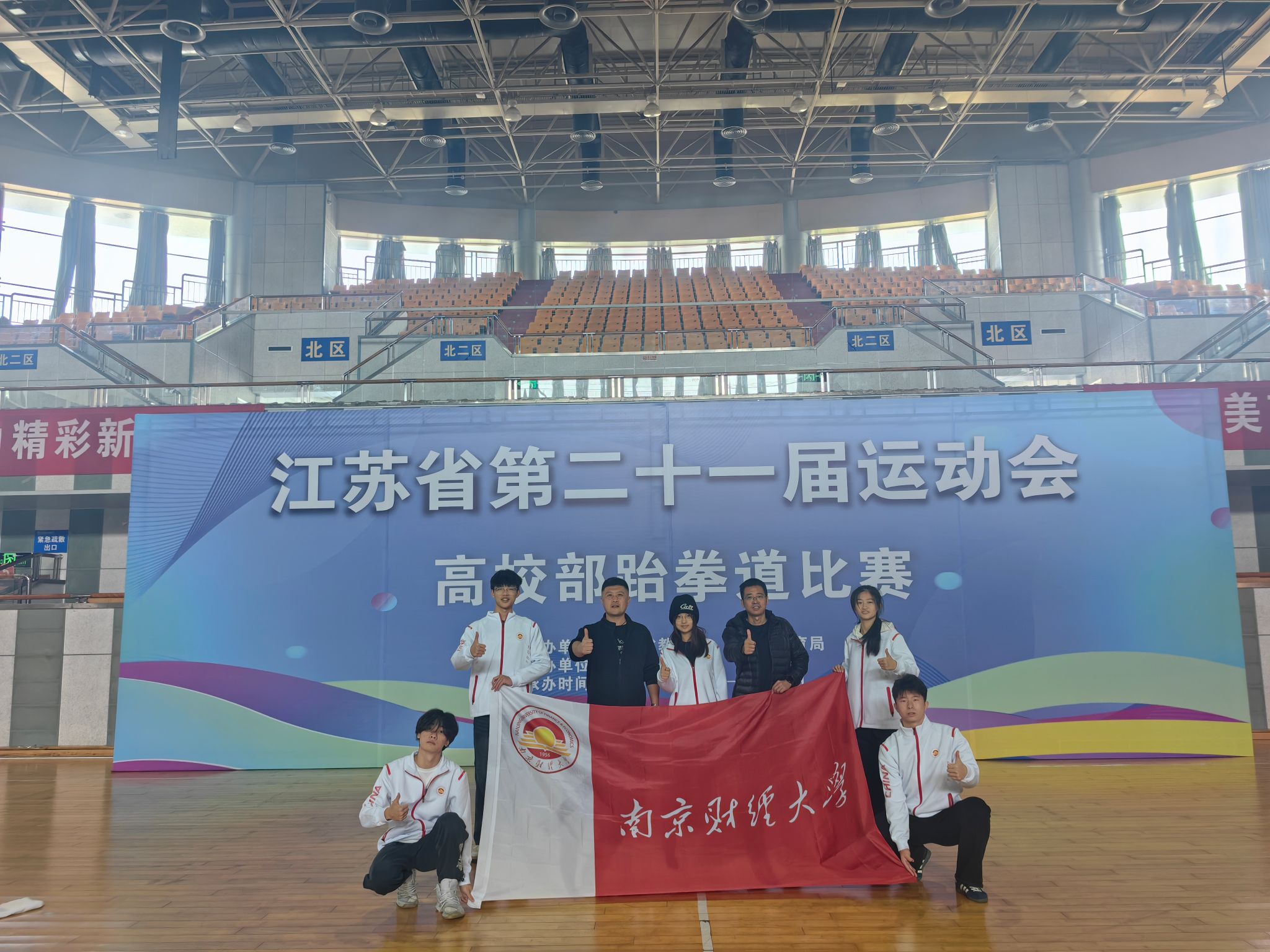 11月5日至10日,江苏省第二十一届运动会高校部跆拳道比赛在江苏师范大学举办。我校代表队在比赛中发挥出色,计算机与人工智能学院软件2402班黎宁获男子63公斤级金牌,并获得“优秀运动员”称号;金融学院金融工程2401班郑琦霖获男子54公斤级第五名。