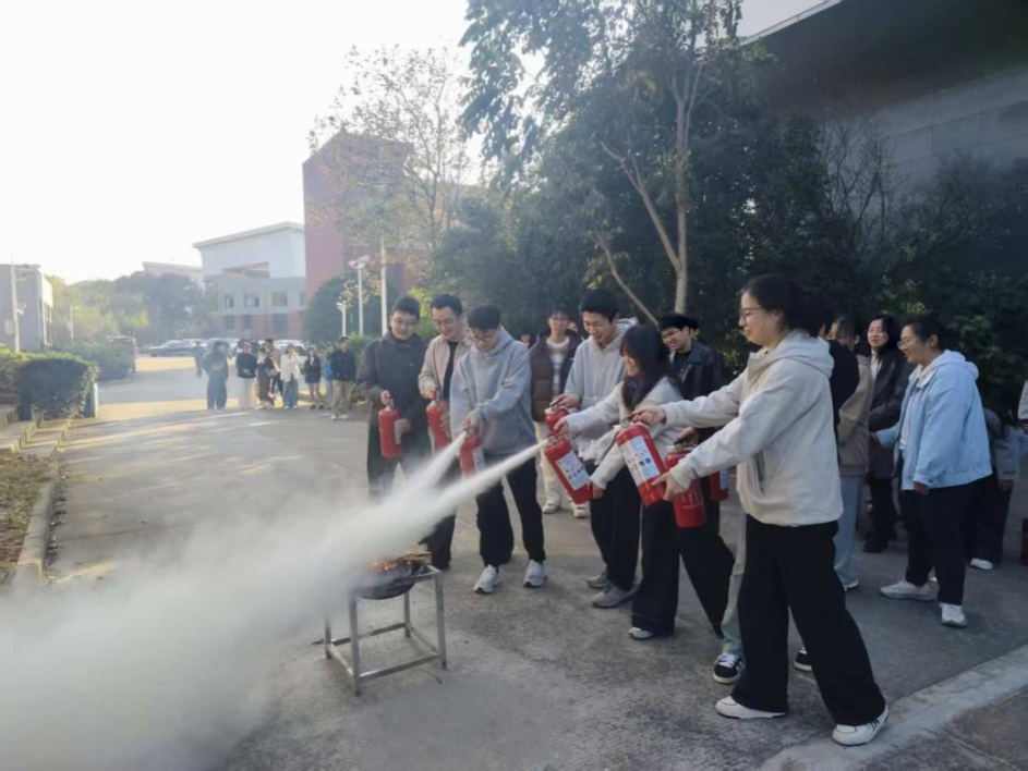 强化消防演练,提升应急能力。金融学院联合栖霞区消防大队、校医院开展综合演练,涵盖灭火、疏散、急救及搜救犬演示等全环节;工商管理学院、公共管理学院、外国语学院、新闻与文化传播学院等组织了灭火器实操与应急疏散演练,帮助学生在模拟情境中掌握关键技能,提升应急自救与互救能力。