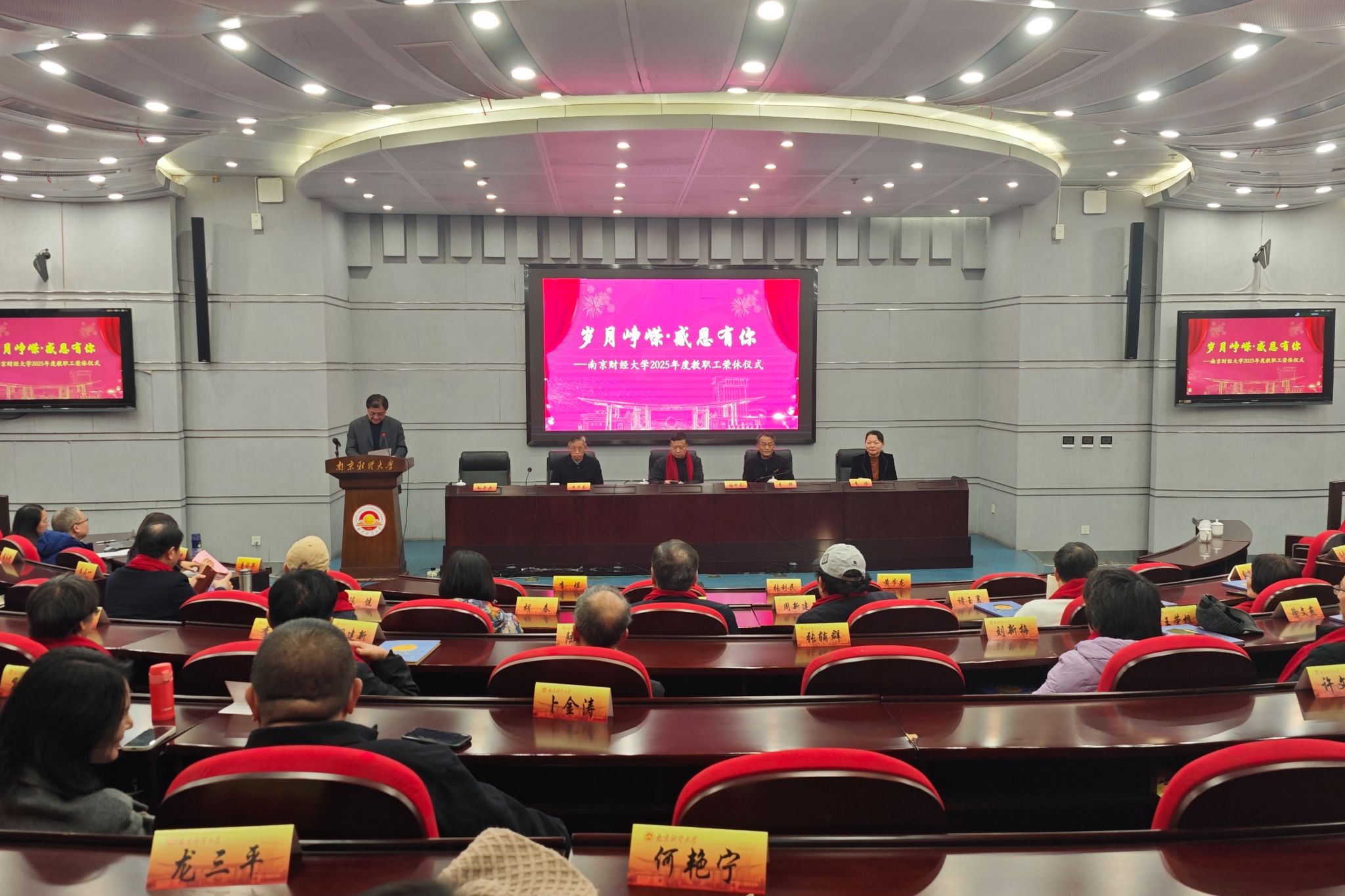 12月18日下午,我校2025年度教职工荣休仪式在仙林校区行政楼二楼报告厅举行。校党委书记张利民,校党委副书记李群,党委常委、副校长黄步龙,党委常委、副校长李煜出席仪式。2025年度荣休教职工、相关职能部门领导、二级党组织负责人、分工会主席和教职工代表共聚一堂,见证这一温馨时刻。仪式由校工会主席孙丹兵主持。