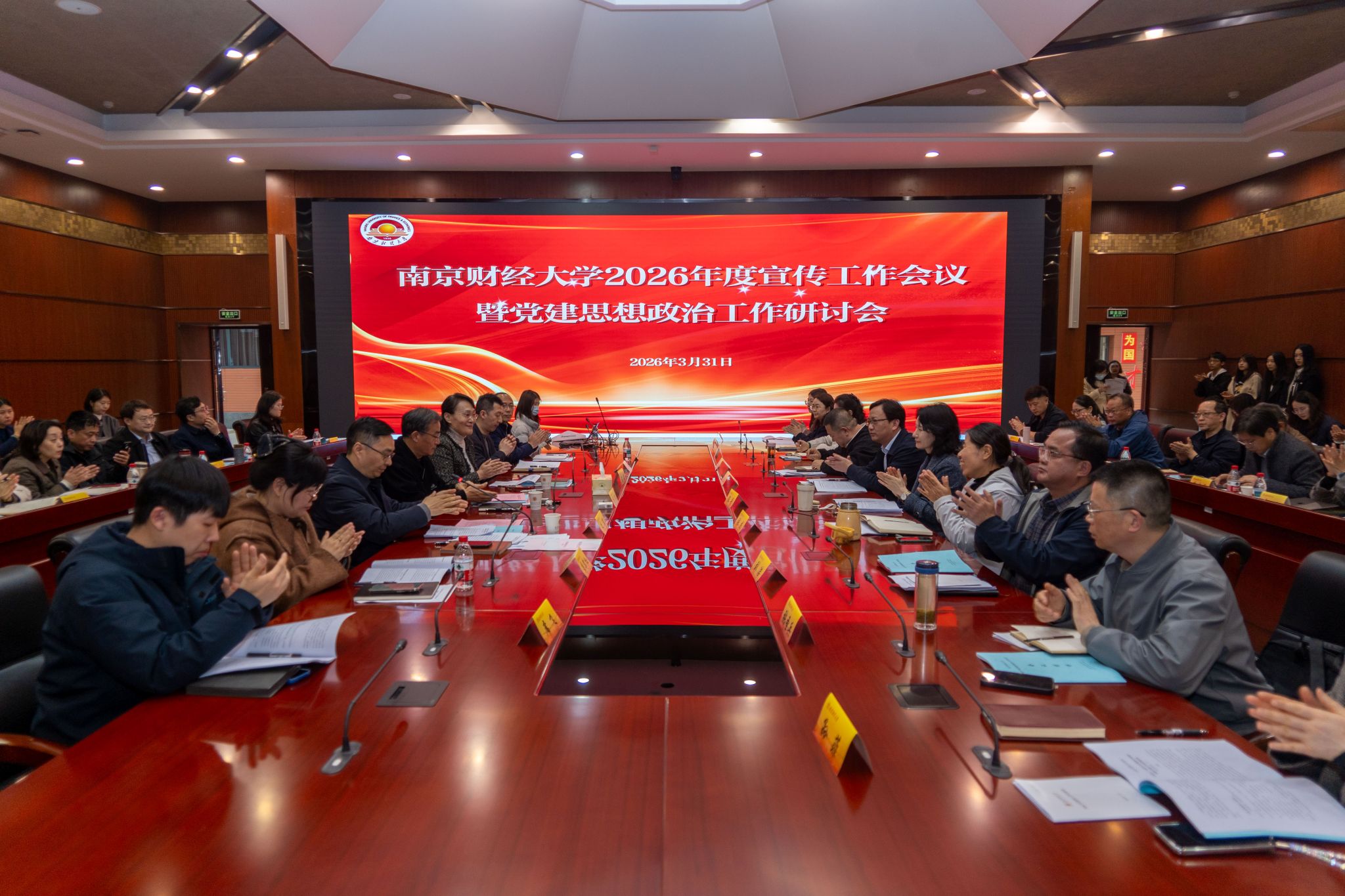 会上,吕戎部长通报了2025年度党建思想政治工作课题研究立项、结题情况。朱军部长通报了2025年度党建思想政治工作研讨会论文征集情况,宣读了研讨会论文获奖名单。党委宣传部副部长秦韶华通报了2025年度江苏高校思政“金微课”征集遴选情况,宣读了思政“金微课”省级获奖名单,通报了2026年度校级思政精品项目、2025年度网络教育优秀作品征集情况,宣读了思政精品项目立项名单、网络教育优秀作品获奖名单。党委宣传部副部长龚莉红宣读了《关于表彰南京财经大学2025年度“优秀新闻宣传单位”“优秀宣传员”“优秀通讯员”的决定》。