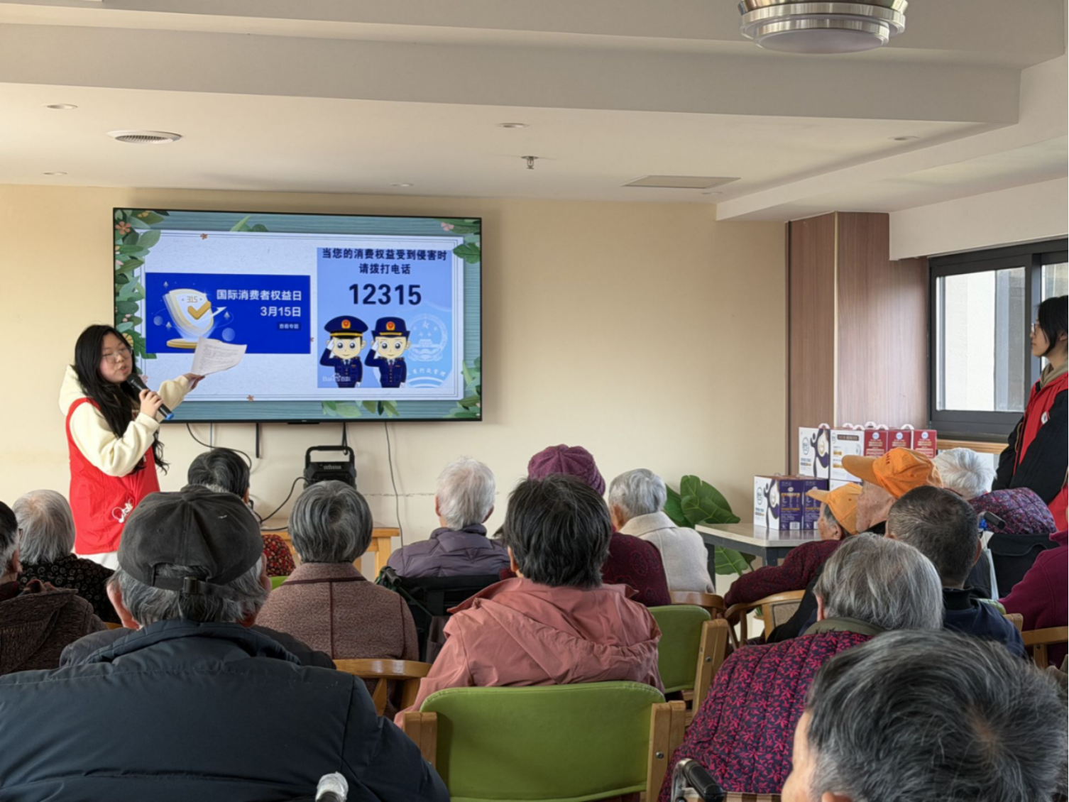 国际经贸学院青年志愿者走进南京爱德仁谷护理院,通过“宣讲+互动”形式,向老人普及消费者权益保护法及12315投诉热线使用方法,结合小区领礼品、养生“神药”、养老理财等真实案例讲解防骗知识。问答环节中,老人们踊跃参与,将“不轻信、不透露、不转账”理念内化于心。活动切实提升了老年群体的防骗意识和维权能力。